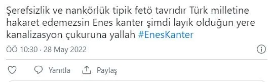 "FETÖ'CÜ ENES KANTER BU HAKARETİ TÜRK MİLLETİNE YAPMIŞTIR"