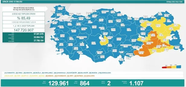 Sağlık Bakanlığı son 24 saatte 2 kişinin hayatını kaybettiğini, 864 kişiye ise koronavirüs tanısı konduğunu açıkladı. Böylece üst üste üç gün boyunca vaka sayısı 1000'in altında kaldı ve toplu taşıma araçlarındaki maske takma zorunluluğu kalkmış oldu.