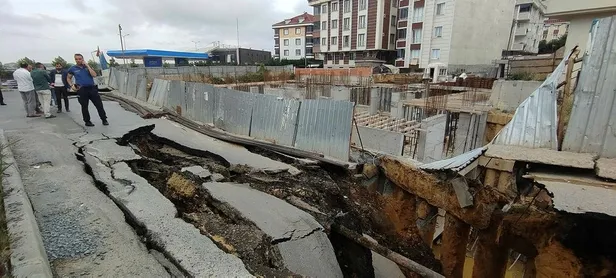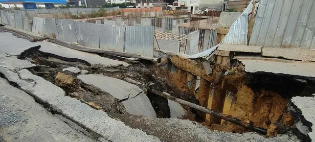 Eski Habipler Mahallesi Çınarlı Caddesi'nde bina inşaatı yapılan alanın yanındaki yol, henüz belirlenemeyen nedenle çöktü.