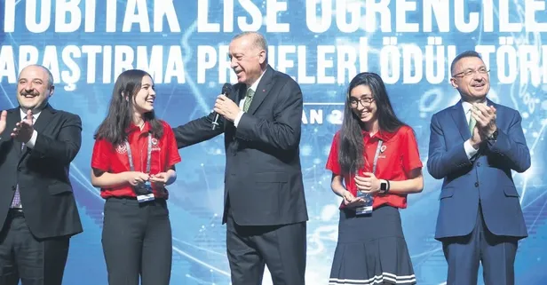 Başkan Erdoğan, Lise Öğrencileri Araştırma Projeleri Final Yarışması'nda dereceye giren öğrencilere ödüllerini verdi.