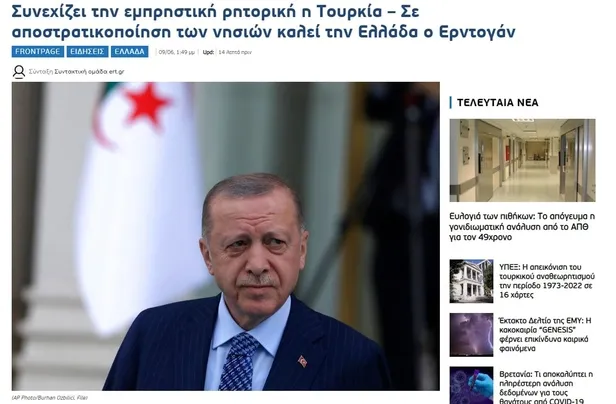 Ertnews: Türkiye kışkırtıcı söylemini sürdürüyor: Erdoğan Yunanistan'ı adaları silahsızlandırmaya çağırıyor.