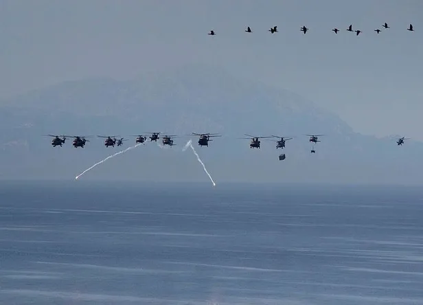 Ben buradan Yunanistan'ı böyle bir tatbikatın 10'da 1'ini yapmaya davet ediyorum. Yapabiliyor mu yapamıyor mu bir görelim. Bakın savaştan bahsetmiyorum. Yunanistan ordusu hiç savaşmadı. Bunun tatbikatını bile yapamaz. Türkiye ucundan gösteriyor tamamını göstermiyor. Bunu asker kişiler alacaktır bu mesajı.