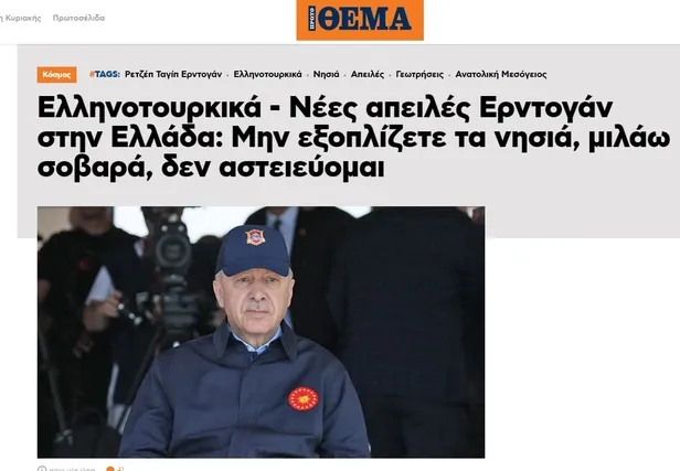 Protothema: Erdoğan'dan Yunanistan'a tehdit: Adaları donatmayın, ciddi konuşuyorum, şaka yapmıyorum.