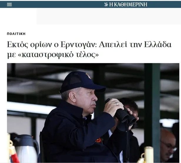 Kathimerini: Erdoğan sınırları aşıyor: Yunanistan'ı 'felaket bir sonla' tehdit ediyor.
