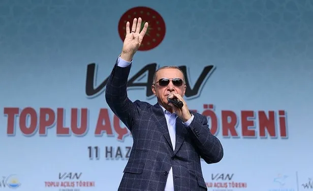 Türkiye'nin doğusunun yükselen yıldızı, bölgesinin lokomotifi, tarih ve medeniyet şehri Van'a her gelişinde sevgiyle, coşkuyla, kadirşinaslıkla kendisini bağrına basanlara teşekkür eden Erdoğan, "Van, bizi bilir; biz de Van'ı biliriz. Hamdolsun havalimanından buraya kadar caddenin kenarlarında on binlerin bizi bağırlarına bastığını görmek, hakikaten bizim için ayrı bir mutluluk oldu. İnanıyorum ki Van, bu gidişiyle attığı bu adımla o birilerini yolda bırakacaktır." diye konuştu.