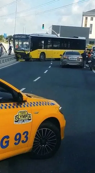 Arnavutköy-İstanbul Havalimanı yolu üzerindeki Taşoluk peronlarda bekleyen İETT otobüsü, sürücünün araçtan inmesinin ardından kayarak yola çıkıp bir otomobile çarptı.