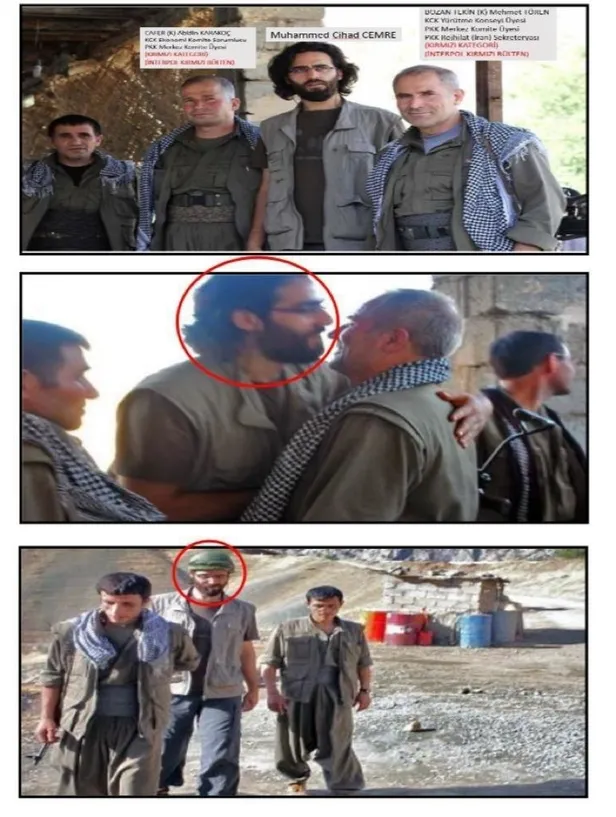 Gönderilen fotoğraflar incelendiğinde, Muhammed Cihad Cemre'nin İçişleri Bakanlığı Terör Arananlar Listesinde Kırmızı Renk Kategorisinde aranan PKK/KCK terör örgütü mensuplarıyla kırsal alanda çekilmiş fotoğraflarının olduğu belirlendi.