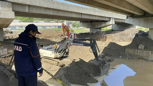 Dere yatağında tarama çalışması da yürüten ekipler, daha önce Bayrak'ın kullandığı iş makinesini ve ayakkabısını bulmuştu.