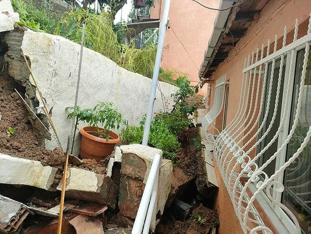 Fotoğrafta: Şiddetli yağışın ardından Sarıyer'de yol çöktü, gecekondu tahliye edildi