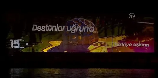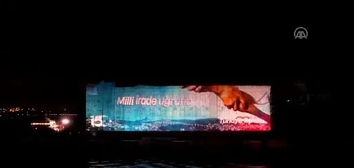 Saat 22.00'de başlayan gösteride 15 Temmuz şehitlerinin fotoğrafları ve o geceye dair görüntüler yer aldı.