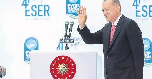 Cumhurbaşkanı Tayyip Erdoğan, dün Cuma namazı Eyüpsultan Camii'nde kıldı. Ardından Eyüpsultan Meydanı'nda düzenlenen 41 Ayda 41 Eser Toplu Açılış Töreni'ne katıldı. Şu mesajları paylaştı: