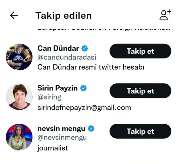 ABD Merkez Kuvvetler Komutanlığı'nın Türkçe Twitter hesabının takip ettiği hesaplar arasında firari FETÖ'cüler ve CHP yandaşı gazetecilerin olduğu görüldü.