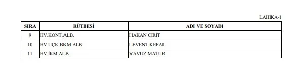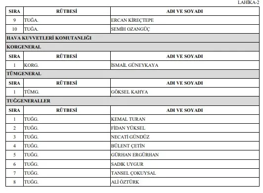 Donanma Komutanı Oramiral Ercüment Tatlıoğlu Deniz Kuvvetleri Komutanlığına, Muharip Hava Kuvveti Komutanı Orgeneral Atilla Gülan Hava Kuvvetleri Komutanlığına atandı.