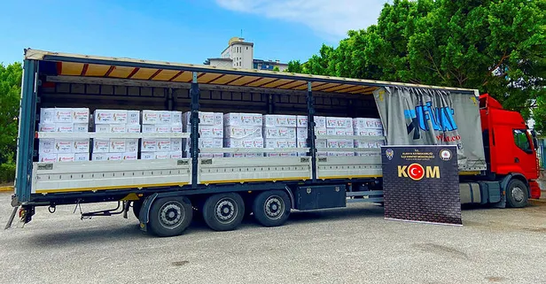 Konaklı Mahallesi'nde M.A'nın kullandığı tırı durduran ekipler, araçta yaptıkları aramada 17 bin 160 şişe kaçak içki, 19 bin 500 sahte bandrol ele geçirdi.