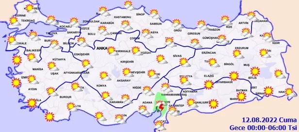 Meteoroloji Genel Müdürlüğü tarafından yapılan son değerlendirmelere göre: Ülkemizin kuzey, iç ve batı kesimlerinin parçalı, yer yer çok bulutlu, Marmara'nın doğusu, Akdeniz'in iç kesimleri ve İskenderun Körfezi Çevreleri, Batı Karadeniz (Sinop hariç), Balıkesir, Muğla, Trabzon, Rize, Artvin, Gümüşhane ve Ardahan çevreleri ile Denizli'nin güney ve doğu ilçelerinin yerel sağanak ve gök gürültülü sağanak yağışlı, diğer yerlerin az bulutlu ve açık geçeceği tahmin ediliyor.