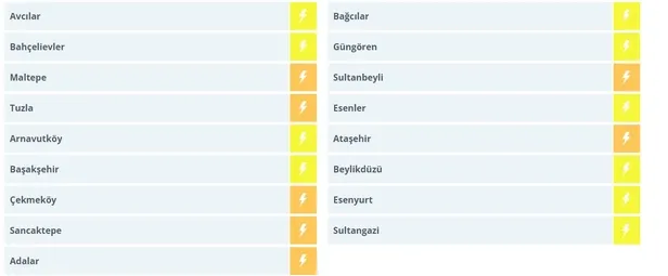 Meteoroloji yayınladığı haritada, Beykoz, Kadıköy, Kartal, Şile, Üsküdar, Pendik, Ümraniye, Maltepe, Sultanbeyli, Tuzla, Ataşehir, Çekmeköy, Sancaktepe ve Adalar için turuncu kodlu uyarıda bulundu.