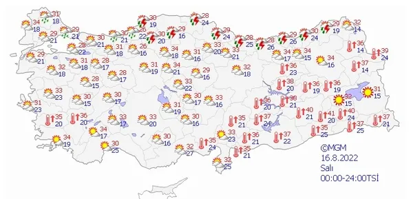 16 AĞUSTOS 2022 SALI HAVA DURUMU