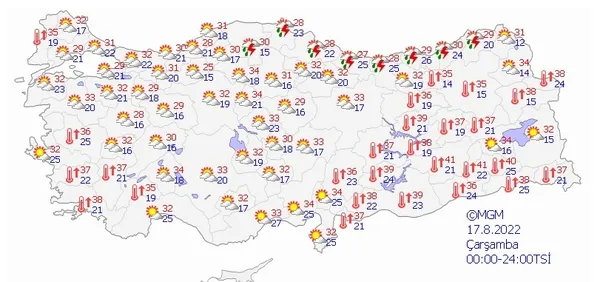17 AĞUSTOS 2022 ÇARŞAMBA HAVA DURUMU