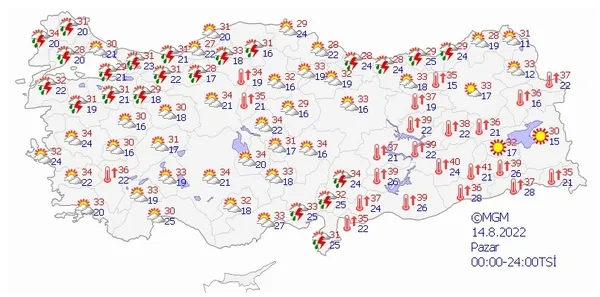14 AĞUSTOS 2022 PAZAR HAVA DURUMU