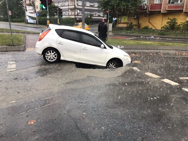 Otomobilinin çıkarılması için itfaiye ekiplerinin çalışmalarını tamamlamasını bekleyen Osman, "Yağmur vardı, sel akıyordu. Adımı atana kadar çöktü orası. Önümdeki araç geçti, arkası çukura düştü önden kurtardı. Ben de arkasındaydım yavaşladım ama düştüm çukura. Burada sel akıyordu. Kendi imkanlarımızla çıktık araçtan" dedi.