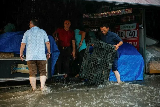 Yağmur yağışıyla Eminönü Meydanı çevresinde su birikintileri oluştu. Meydanda bulunan dükkanları su bastı. Esnaf kendi çabasıyla suyu tahliye etmeye çalıştı.