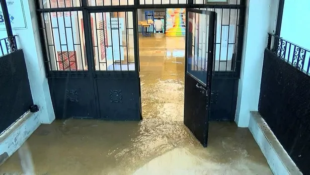 BEYKOZ'DA YOLLAR GÖLE DÖNDÜ İLKOKULU SU BASTI