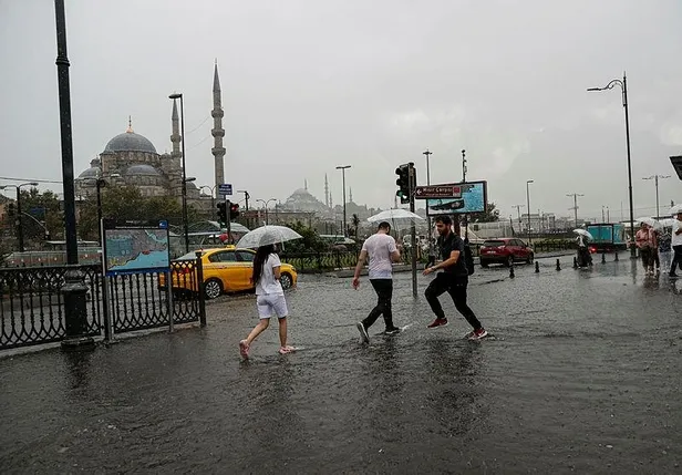 Kentin en işlek yerlerinden Taksim ve Eminönü'nde etkili olan yağış sonrası bazı vatandaşlar zor anlar yaşadı.