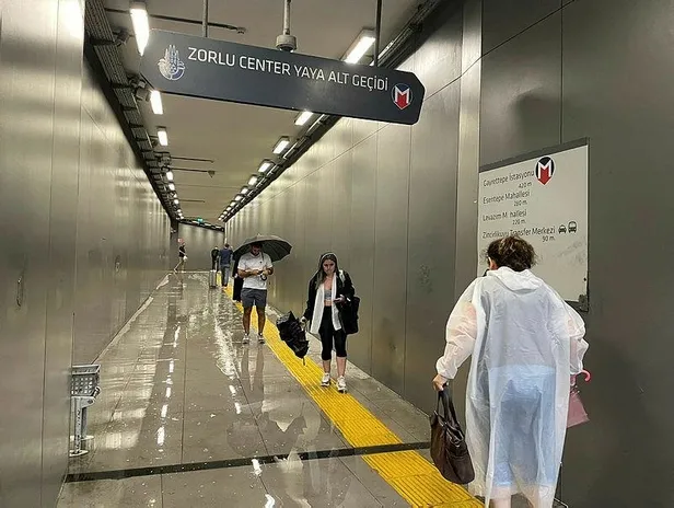 Zincirlikuyu'da metroya giden Zorlu Center yaya alt geçidinde oluşan yoğun su birikintileri nedeniyle vatandaşlar yürümekte zorlandı.