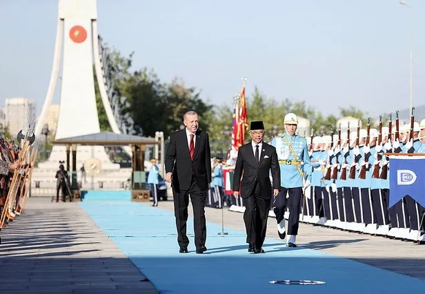 Erdoğan ve Sultan Abdullah Şah'ın tören alanındaki yerlerini almalarının ardından, 21 pare top atışı eşliğinde iki ülke milli marşları çalındı. Malezya Kralı Sultan Abdullah Şah, Muhafız Alayı Tören Kıtası'nı, "Merhaba asker" diyerek Türkçe selamladı.