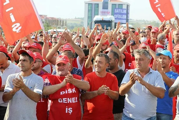 Tekirdağ Büyükşehir Belediyesi'nin çeşitli birimlerinde çalışan DİSK üyesi yaklaşık 500 işçi, ek zam talebinde bulunmak için yürüyüş düzenleyip belediye binası önünde toplandı.