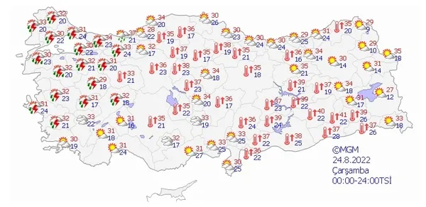 24 AĞUSTOS 2022 ÇARŞAMBA HAVA DURUMU
