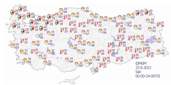 23 AĞUSTOS 2022 SALI HAVA DURUMU