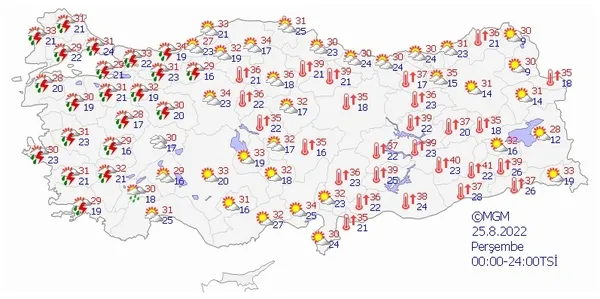 25 AĞUSTOS 2022 PERŞEMBE HAVA DURUMU