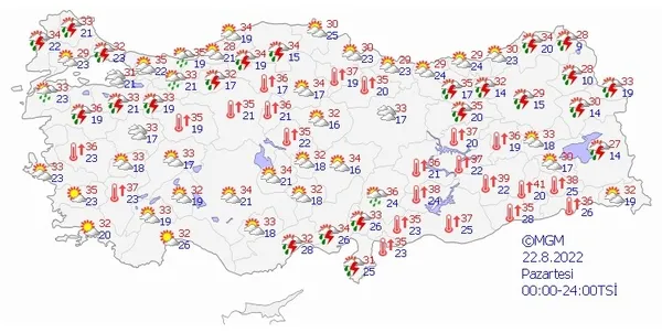22 AĞUSTOS 2022 PAZARTESİ HAVA DURUMU