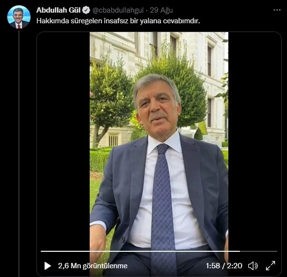 2018'de Erdoğan'ın karşısına "çatı adayı" olarak çıkmaya yeltendi ama kendisinin de açıkladığı gibi çatının tüm bileşenleri onu istemediği için olamadı. Dün yine bir video ile "ulusa seslenmiş" Gül. İzledim ve onun için üzüldüm.