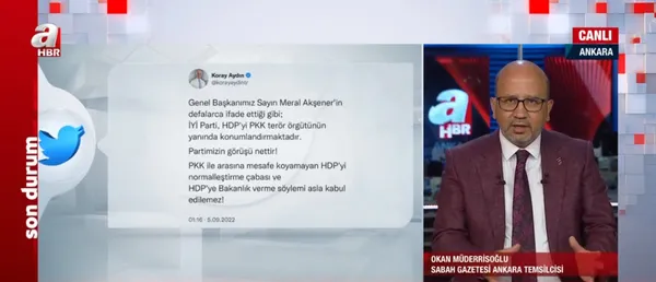 Sabah Gazetesi Ankara Temsilcisi Okan Müderrisoğlu, A Haber canlı yayınında konu ile ilgili değerlendirmelerde bulundu.