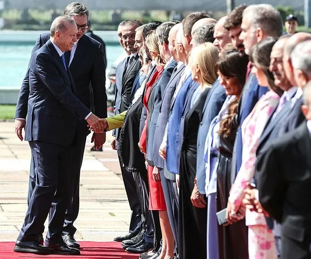 Tören kıtasını selamlayan Erdoğan ve Vucic, tokalaşarak basın mensuplarına poz verdi. İki lider daha sonra heyetlerini takdim etti.
