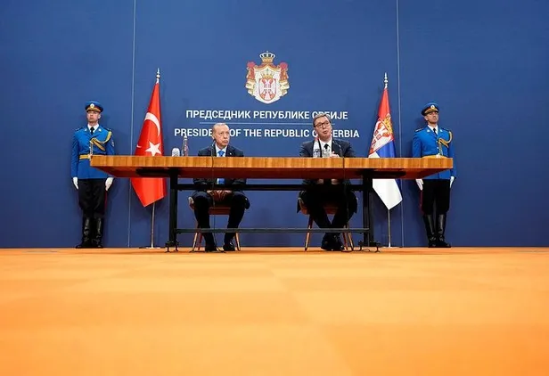 Başkan Erdoğan, ziyarette bulunduğu Sırbistan'da baş başa ve heyetler arası gerçekleştirilen görüşmelerin ardından Sırbistan Cumhurbaşkanı Aleksandar Vucic ile ortak basın toplantısı düzenledi.