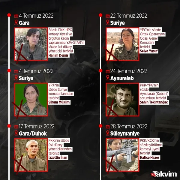 Operasyonlar çok farklı bölgelerde devam etse de son haftalarda özellikle Kamışlı başta olmak üzere Suriye kuzeyinde örgütün sözde yöneticilerine yönelik SİHA temelli hamleler arttı. Bu operasyonlar kapsamında geçmişte Türkiye'de çok kanlı eylemleri yöneten isimler de, örgütün bölgedeki lojistik sorumluları da, PKK'nın en üst düzey yönetimin kurullarına üye teröristler de hedef alındı.