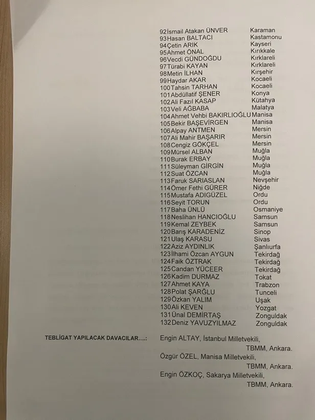 Kanuna olumlu oy verip daha sonra iptal isteyen CHP'li vekiller listesi