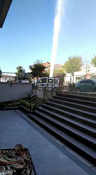 Maltepe'de İSKİ ekiplerinin çalışması sırasında su borusunu patladı. Tazyikli su metrelerce havaya yükselirken, bazı iş yerlerinin suyu kesildi.