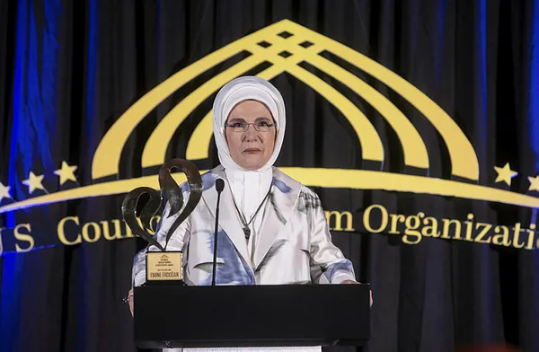 Emine Erdoğan, ABD Müslüman Örgütler Konseyi tarafından düzenlenen törende, sosyal projeler, eğitim, çevre ve insani yardım alanlarında Müslüman kadınlara verilen "Uluslararası Başarı ve Topluma Katkı Ödülü"nü aldı.