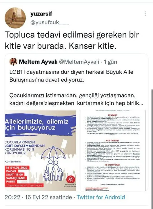 "Çocuklarımızın LGBT Dayatmasından Korunması İçin Yürüyoruz" sloganlı etkinlik için duyurulan vakitten saatler önce Saraçhane Parkı vatandaşlarca dolduruldu.