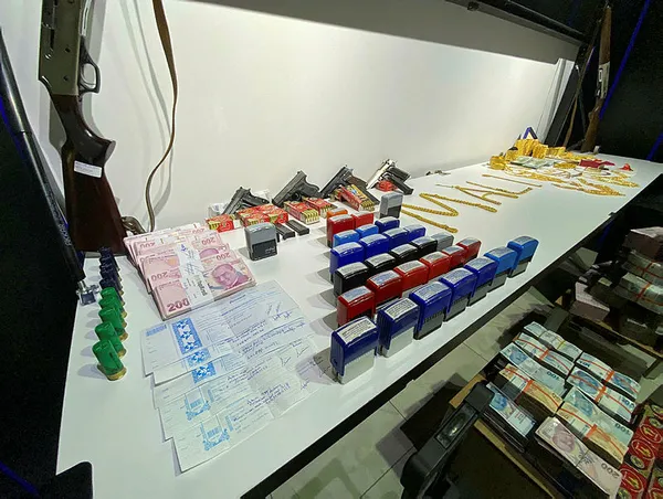 Zanlıların üzerinde ve kaldıkları yerlerde yapılan aramalarda bulunan 12 ruhsatsız tabanca, 4 bin 730 fişek, 3 pompalı tüfek, tapu senetleri, çok sayıda yüksek tutarlı senet, boş senet koçanları, dijital materyal, USB bellek, POS cihazları, kaşeler, örgütsel notların yer aldığı ajandalar, koliler içinde çok sayıda fatura, sevk irsaliyeleri, tahsilat makbuzları ve gider pusulaları ile çeşitli belge ve dokümana el konuldu.