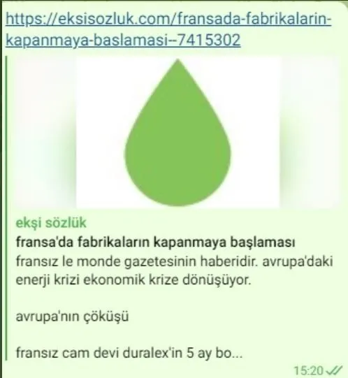 Ekşi Sözlük'teki tek operasyon CHP'nin PKK ile olan ilişkisi değil. Avrupa'daki enerji krizi sonrası oluşan olumsuz tablo da saklanmaya çalışılıyor. Bu doğrultuda Fransa'da fabrikaların enerji krizi nedeniyle kapanmaya başlamasına dair Fransızca ve Türkçe içerikler yok edildi.