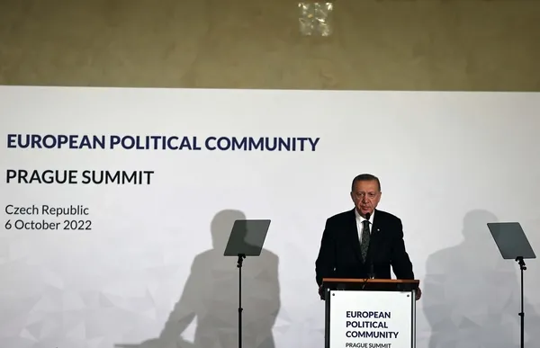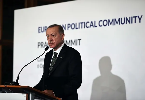Çekya'nın başkenti Prag'daki Avrupa Siyasi Topluluğu (AST) toplantısına katılan Erdoğan, ikili görüşmelerinin ardından Prag Kalesi'nde basın toplantısı düzenledi.