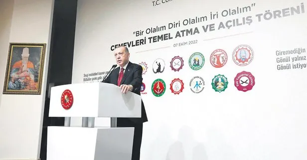 Cumhurbaşkanı Erdoğan, dün İstanbul'daydı. Göztepe'de bulunan Şahkulu Sultan Dergâhı'nda 11 yeni cemevinin temel atma ve açılış törenine katıldı. Konuşmasında şu mesajları paylaştı: