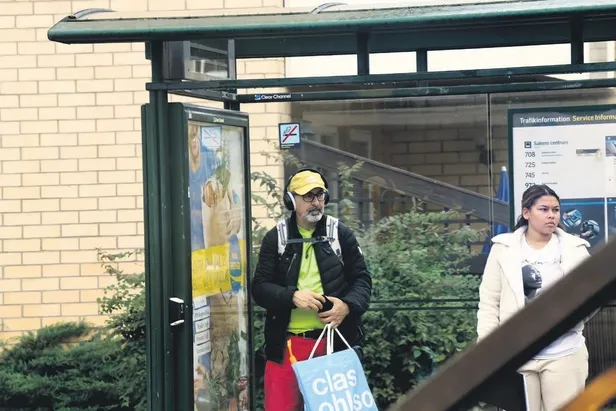 Otobüs beklerken görüntülenen Bozkurt'un sarı şapka, yeşil tişört ve kırmızı renkli pantolon giymesi dikkat çekti.