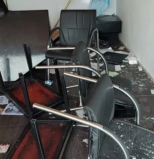 Kapının giriş camı ile içeride bulunan mobilyaların kırıldığını gördüm. Kooperatif karar defteri, üye kayıt defteri, üyelerin kira sözleşmelerinin bulunduğu çantayı çalmışlar.