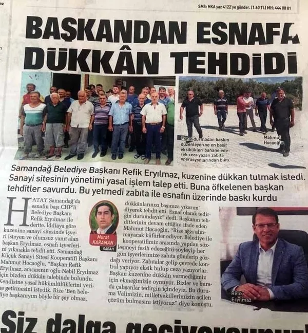CHP’li belediye başkanlarının her gün yeni bir vukuatı ortaya çıkıyor. Bu kez adres Hatay Samandağ. CHP’li Hatay Samandağ Belediye Başkanı Refik Eryılmaz, kuzenine sanayi sitesinden istediği işyeri için olumsuz yanıt alınca önce tehdit etti sonra adamları dükkan bastı.
